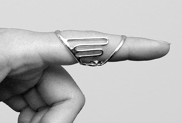 Use the SilverRing™ Boutonniere Lateral Support Splint (BLS) to provide extension mobilization while correcting lateral deviation or to block hypertension while correcting lateral deviation. The boutonniere spacer lengthens the splint for better leverage. BLS style may also fit better compared to Lateral Support Splint when the joint is enlarged due to problems like Osteoarthritis. When using on a finger with an enlarged joint, the splint is often slid over the joint sideways and then rotated into the proper orientation. The lateral support, which is the fulcrum point to block deviation, is always placed on the side opposite the direction the finger is deviating. If the finger is bilaterally unstable, the lateral support splint is available with supports on both sides. Bilateral support can also help stop the splint from rotating as much on the finger.